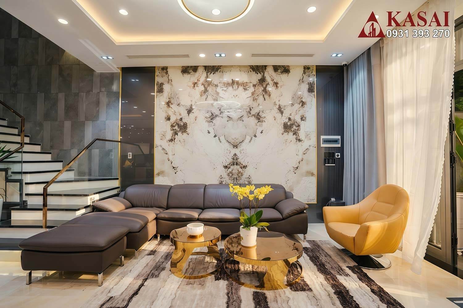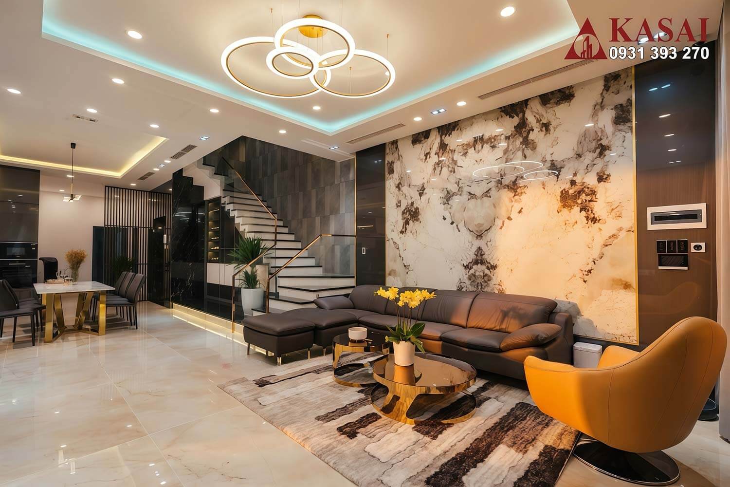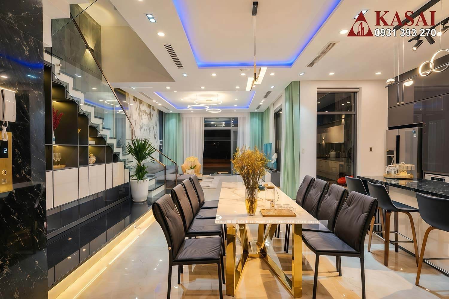 Bên trong mẫu biệt thự này KASAI đã thi công những mảng nội thất chất lượng với vật liệu phù hợp gồm đá, gỗ, nệm, rèm.. tất cả tạo nên một không gian sống đậm chất cá nhân. Không gian vừa sang vừa hiện đại nhưng cũng vô cùng ấm cúng để tìm sự bình yên trong căn nhà này.
