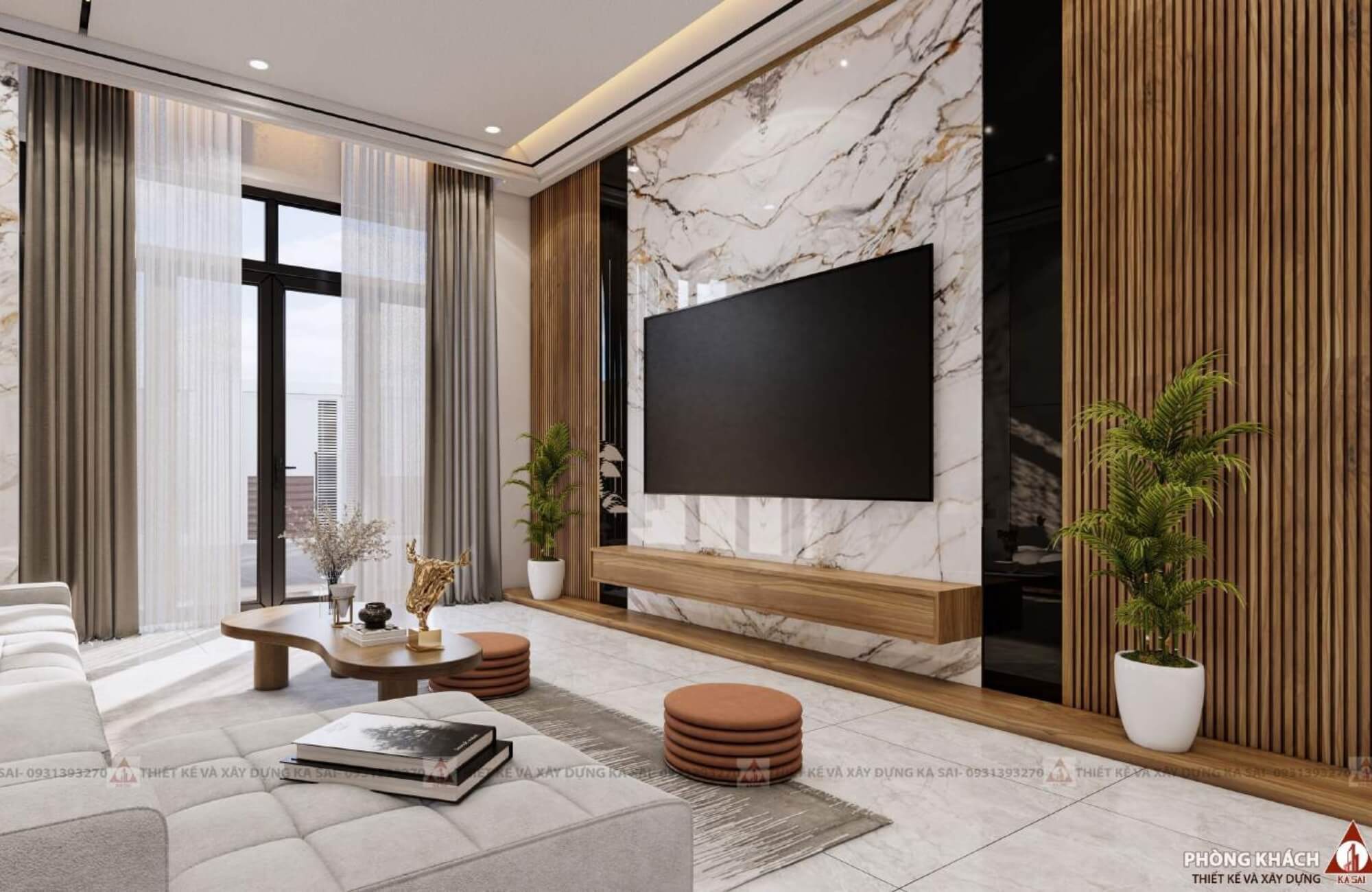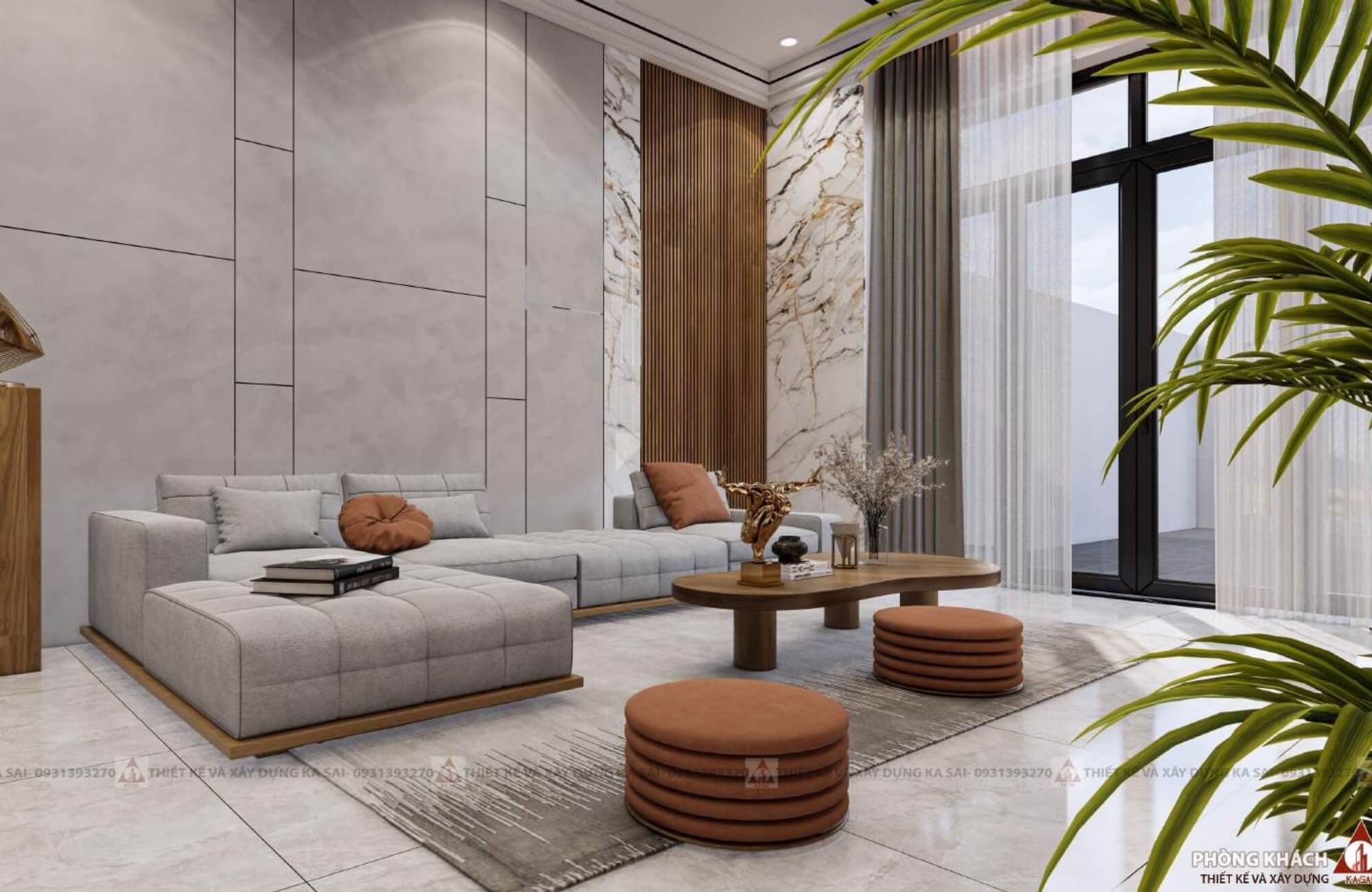 Không gian sống bên trong biệt thự 4 tầng cũng được thiết kế theo tone màu trắng xám nâu gỗ thống nhất với mặt tiền. Nhờ đó tạo cảm giác rất hài hòa và sang trọng thoải mái sinh sống.