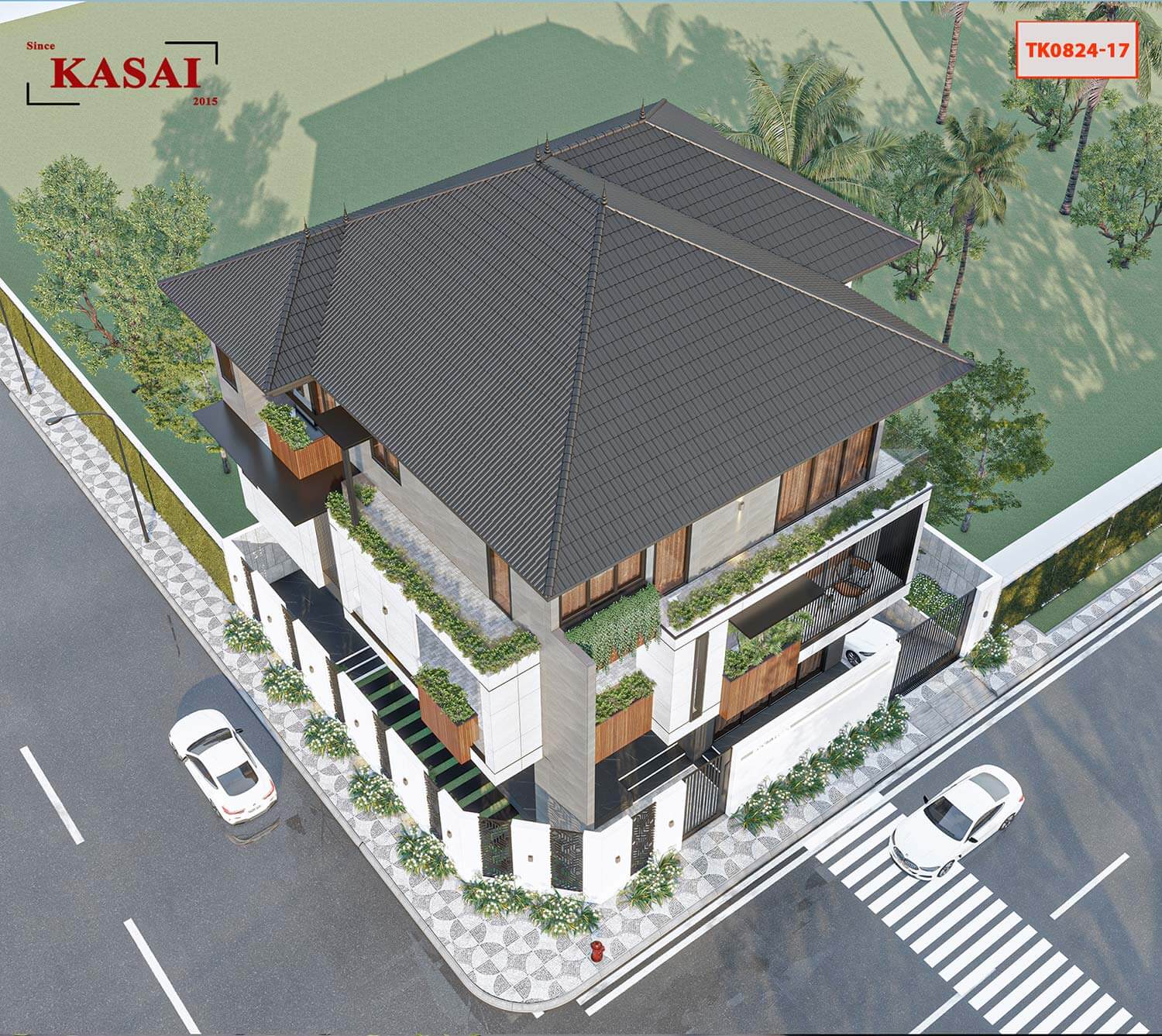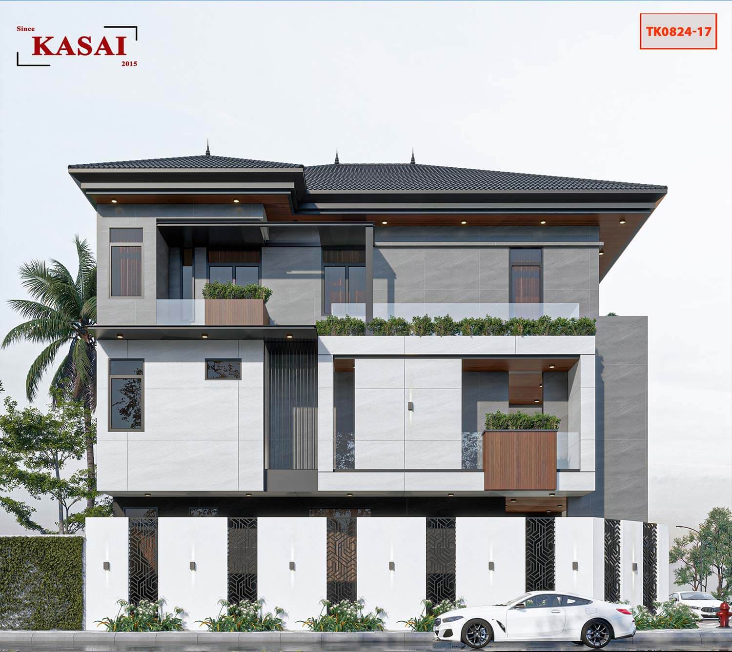 Biệt thự mặt tiền 18m thể hiện rõ ràng phong cách hiện đại với những hình khối gây ấn tượng mạnh mẽ. Không những vậy căn nhà cũng được bố trí những khoảng xanh, không gian thoáng đãng mang đến cuộc sống rất hiện đại, sang trọng mà xanh mát. Cùng khám phá ngay mẫu nhà 3 tầng mặt tiền 18m dưới đây của thietkenhakasai.com và liên hệ tư vấn ngay nhé!