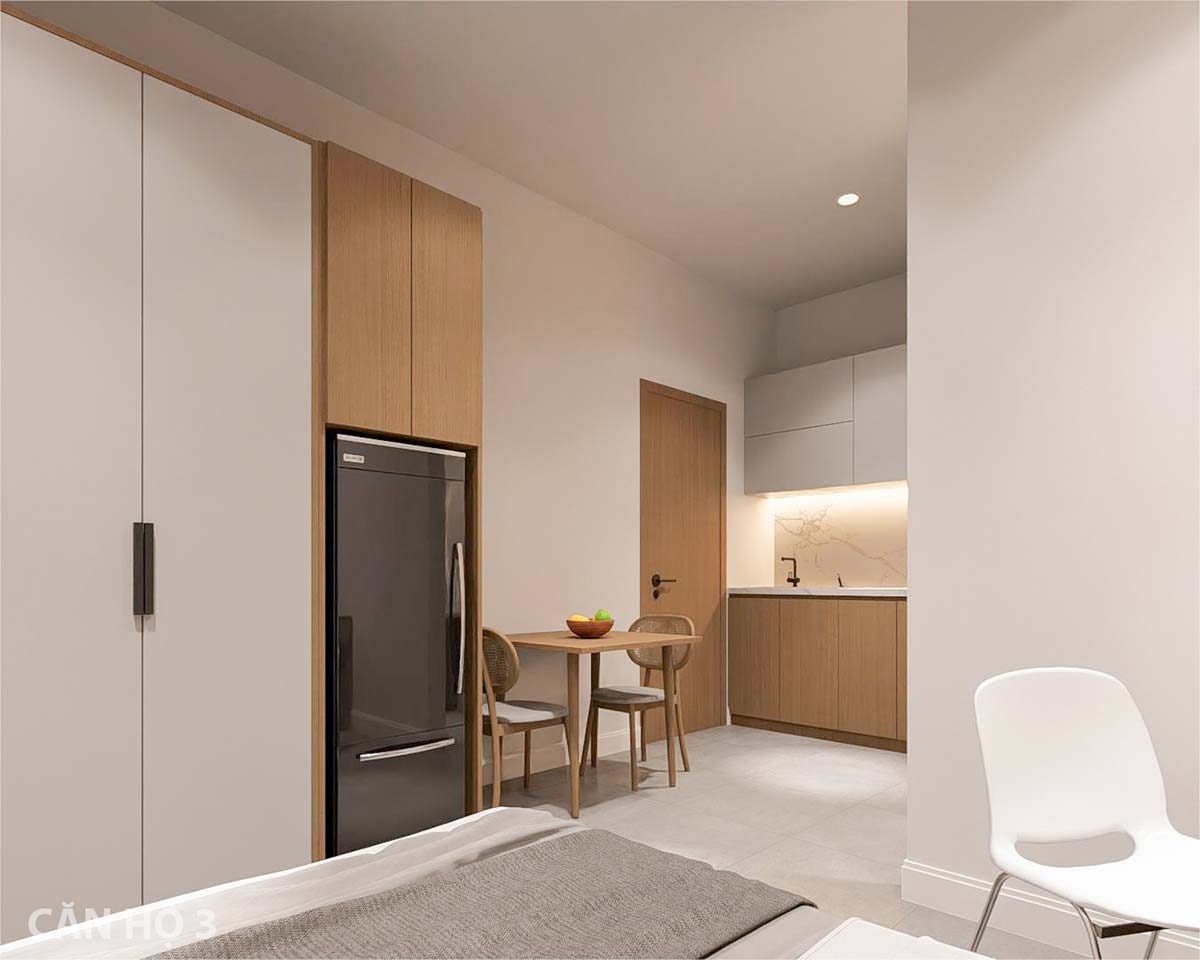 Trong các căn hộ cho thuê không gian được bố trí rất gọn gàng, tối ưu diện tích nhất để tạo nên sự thoải mái rộng rãi khi sinh hoạt cho khách thuê. Nội thất sử dụng chất liệu gỗ vừa ấm cúng lại vừa tối ưu chi phí cho chủ đầu tư.