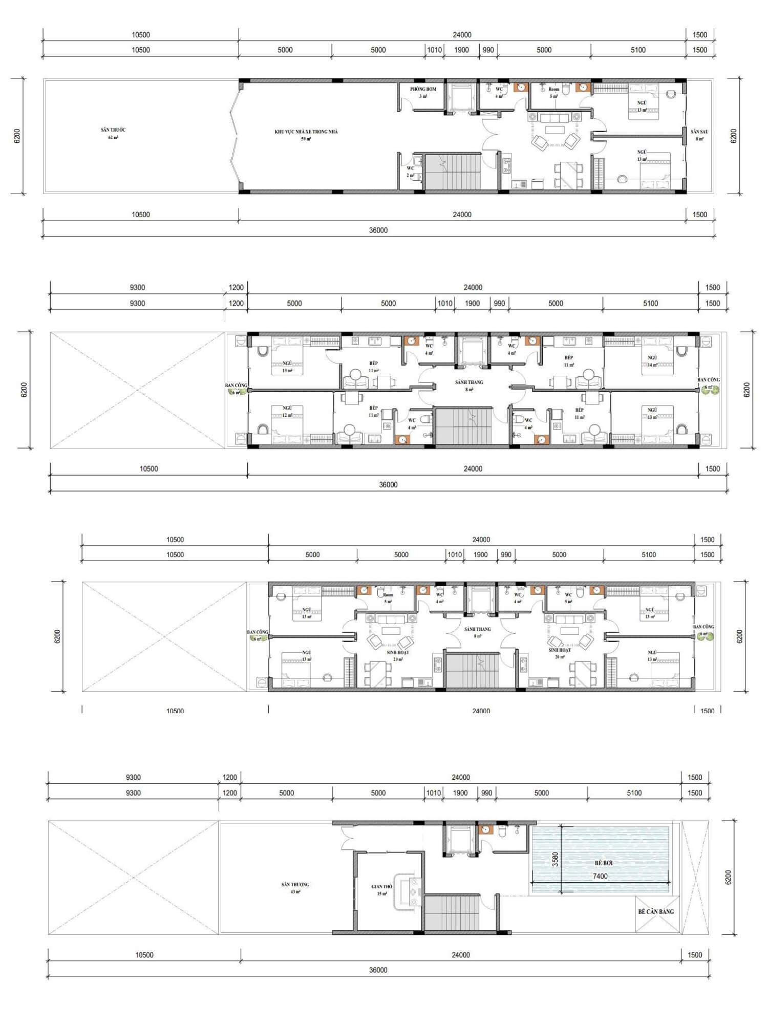 Căn hộ được thiết kế với bố cục rất thông minh. Không gian được bố trí đầy đủ tiện nghi gồm gara, phòng kỹ thuật, các căn hộ cho thuê, và khu vực sinh hoạt của gia chủ.
