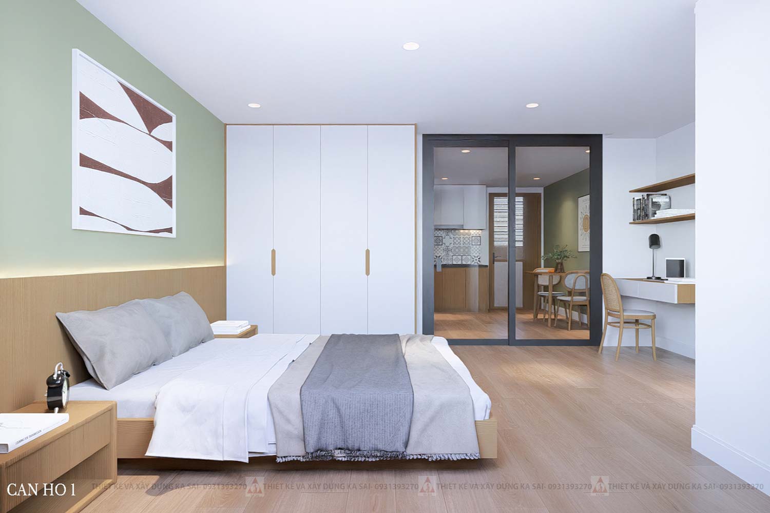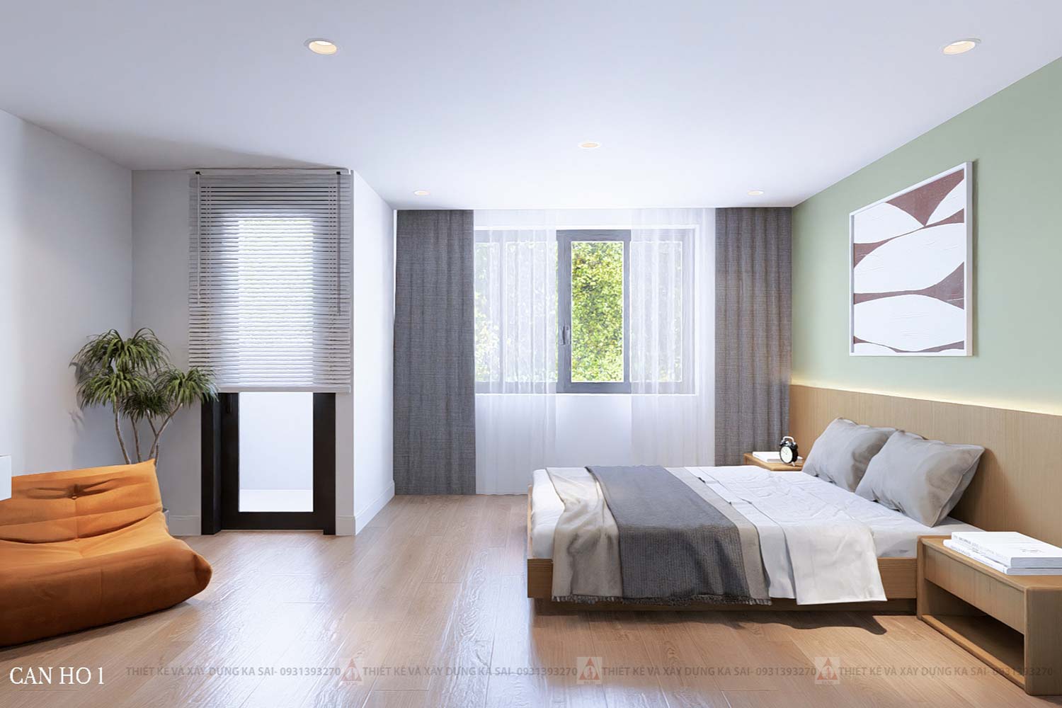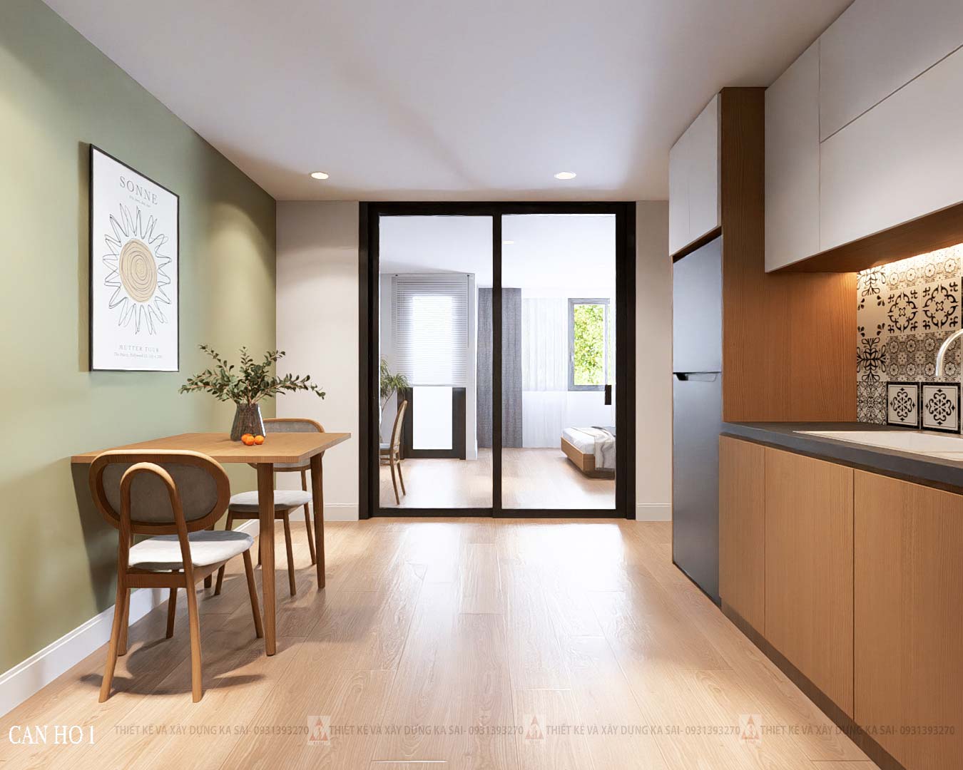 Bên trong căn hộ không gian sinh hoạt rất rộng rãi, tách biệt rõ ràng khu vực bếp và nghỉ ngơi giúp cho khách thuê có thể thoải mái sinh sống. Trong các căn hộ bố trí nội thất tối giản, đa năng đảm bảo sự rộng rãi và tiện nghi cũng như tối ưu chi phí cho chủ đầu tư khi thi công.