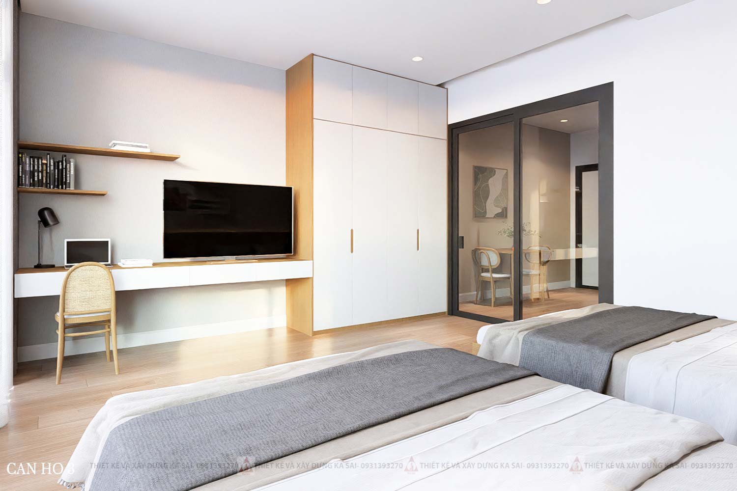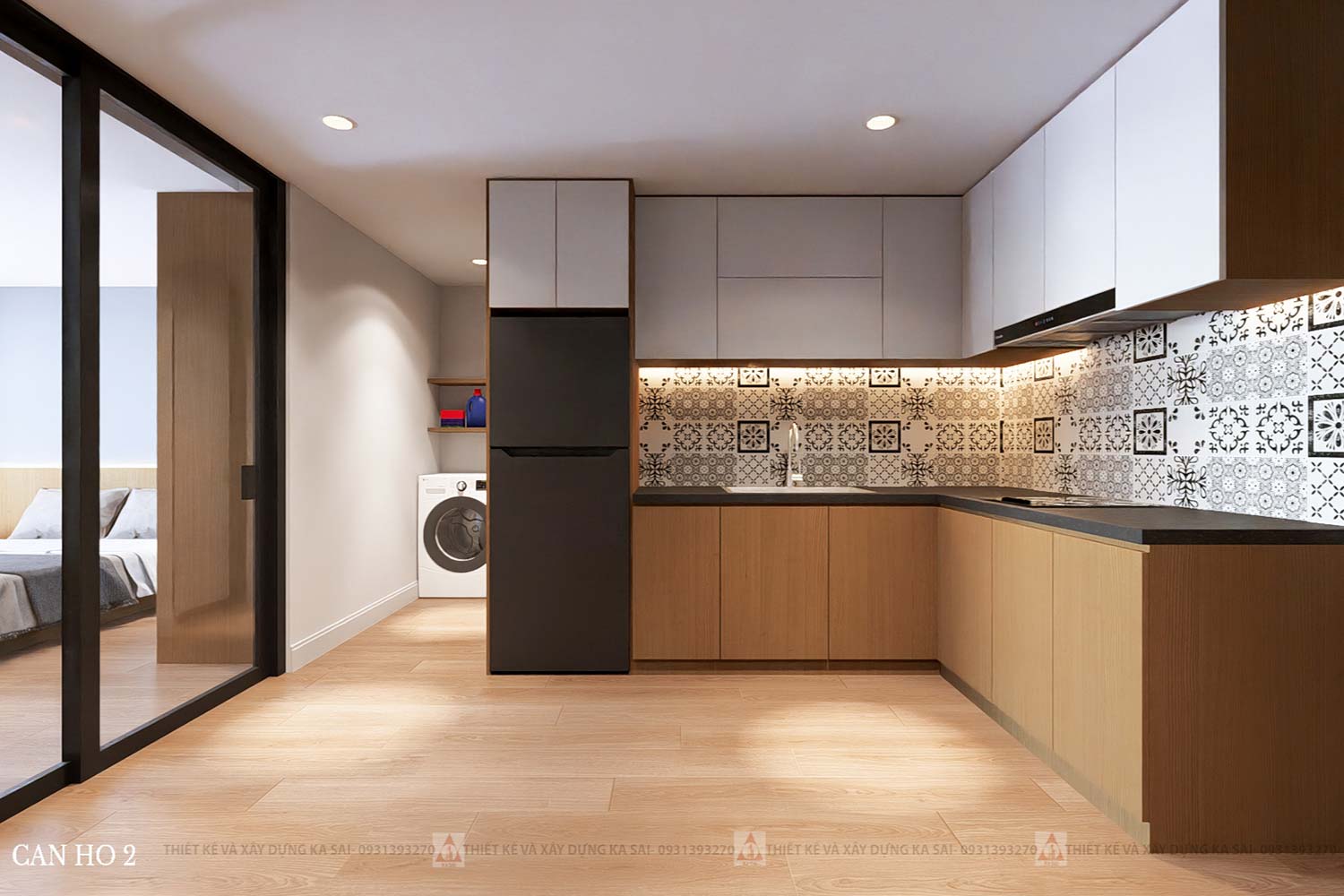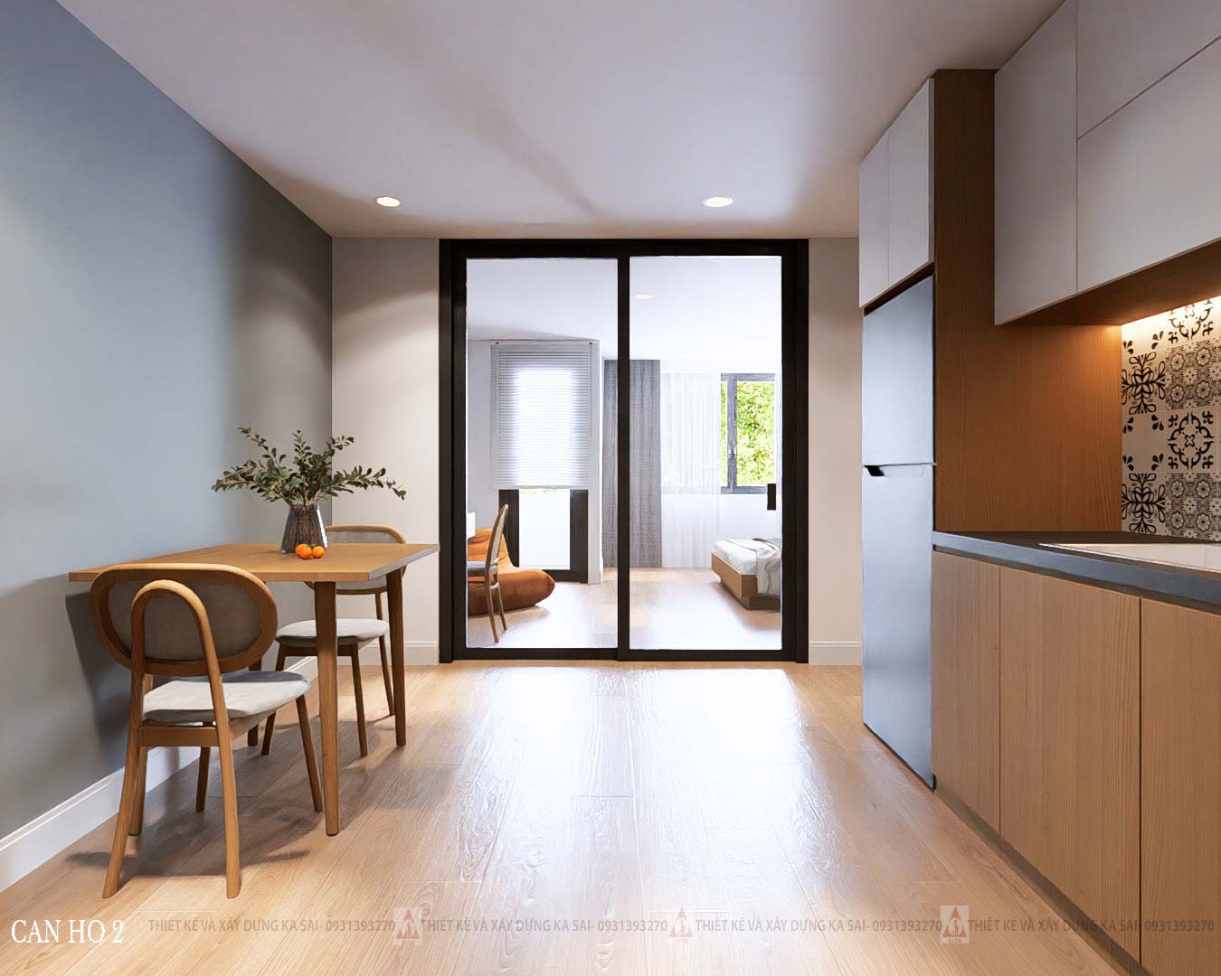 Bên trong căn hộ không gian sinh hoạt rất rộng rãi, tách biệt rõ ràng khu vực bếp và nghỉ ngơi giúp cho khách thuê có thể thoải mái sinh sống. Trong các căn hộ bố trí nội thất tối giản, đa năng đảm bảo sự rộng rãi và tiện nghi cũng như tối ưu chi phí cho chủ đầu tư khi thi công.