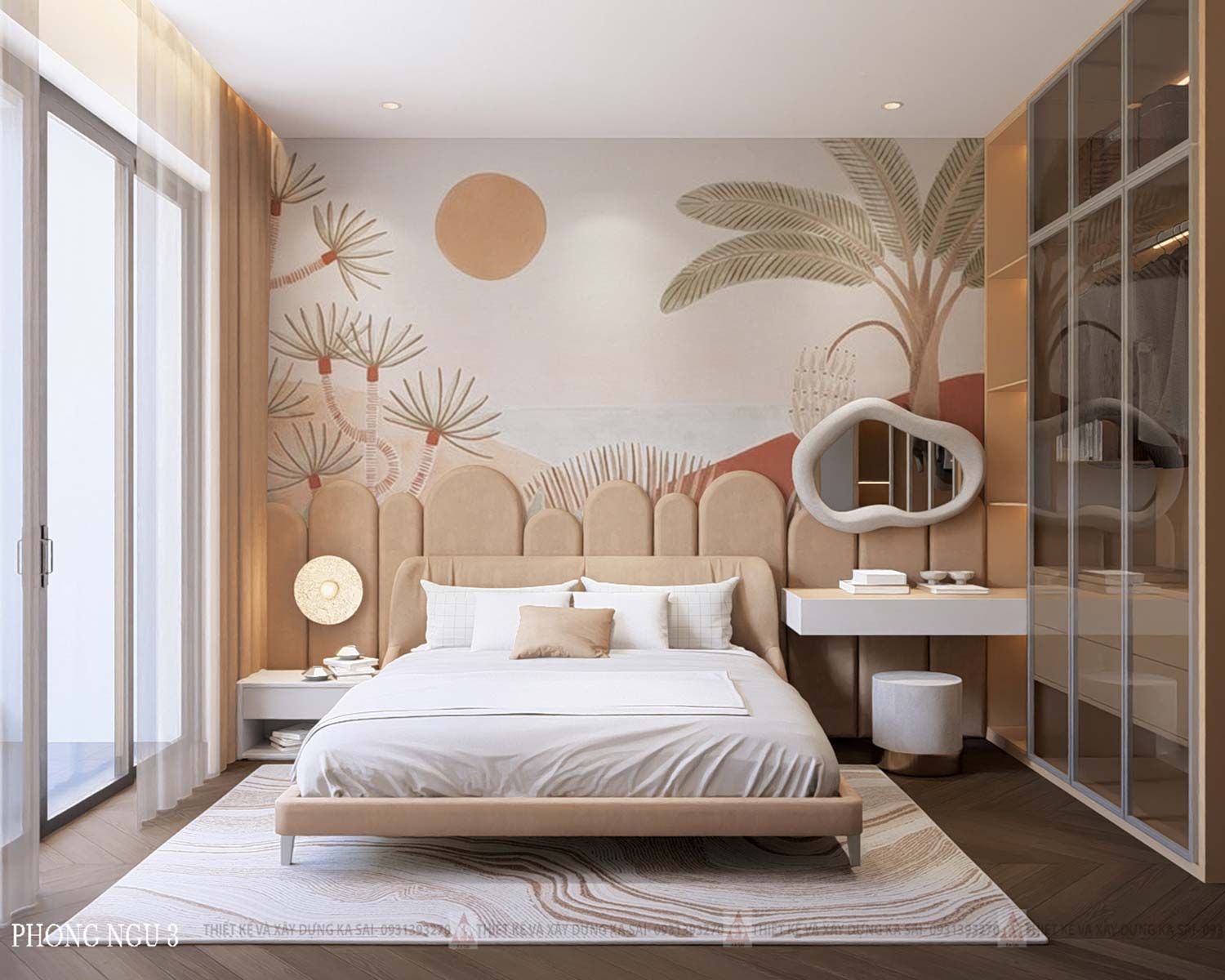 Trong phòng ngủ được trang trí tường đẹp mắt tone màu tươi sáng