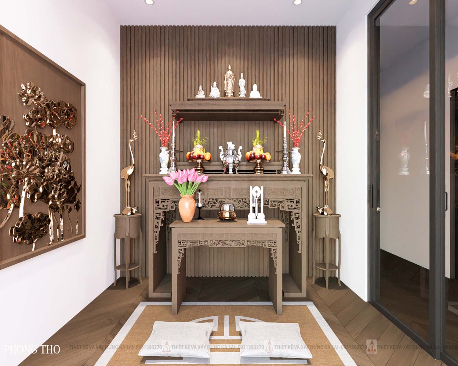 Thiết kế nhà phố 7x18m 3 tầng được bố trí gồm tầng 1 có phòng khách bếp, tầng 2 là 2 phòng ngủ và phòng làm việc; còn tầng 3 sẽ bố trí phòng thờ, sân thượng. Có thể thấy không gian sống rất rộng rãi và công năng đầy đủ cho gia đình sinh hoạt.