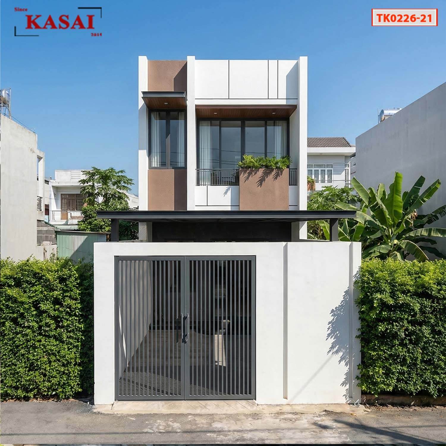 Mẫu nhà ống 2 tầng mặt tiền hiện đại, đẹp, sang trong, xanh mát nhưng vẫn có chi phí cực hợp lý. Gia chủ đang muốn xây nhà 2 tầng cho gia đình của mình hãy nhanh tay chọn lựa cùng KASAI. Mỗi ngôi nhà là một phong cách khác nhau bạn có thể tham khảo và lên ý tưởng cho ngôi nhà của mình cùng kiến trúc sư KASAI.