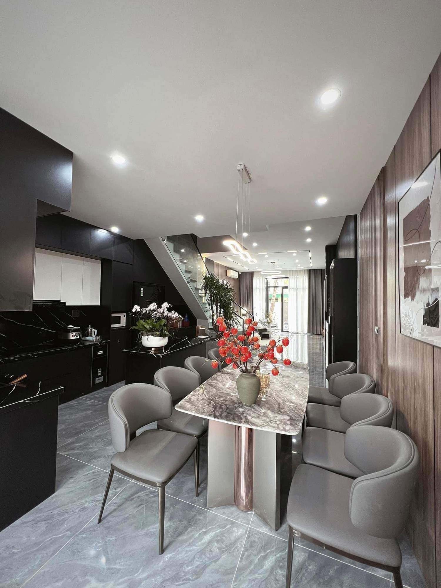 Bên trong ngôi nhà 3 tầng tone trắng không gian sống siêu hiện đại nhưng vẫn vô cùng ấm cúng. Đúng kiểu nhà là nơi bão tố dừng chân nơi cánh cổng, gia chủ khi về nhà có thể tận hưởng không gian sống thật tiện nghi, bình yên và đong đầy cảm xúc.