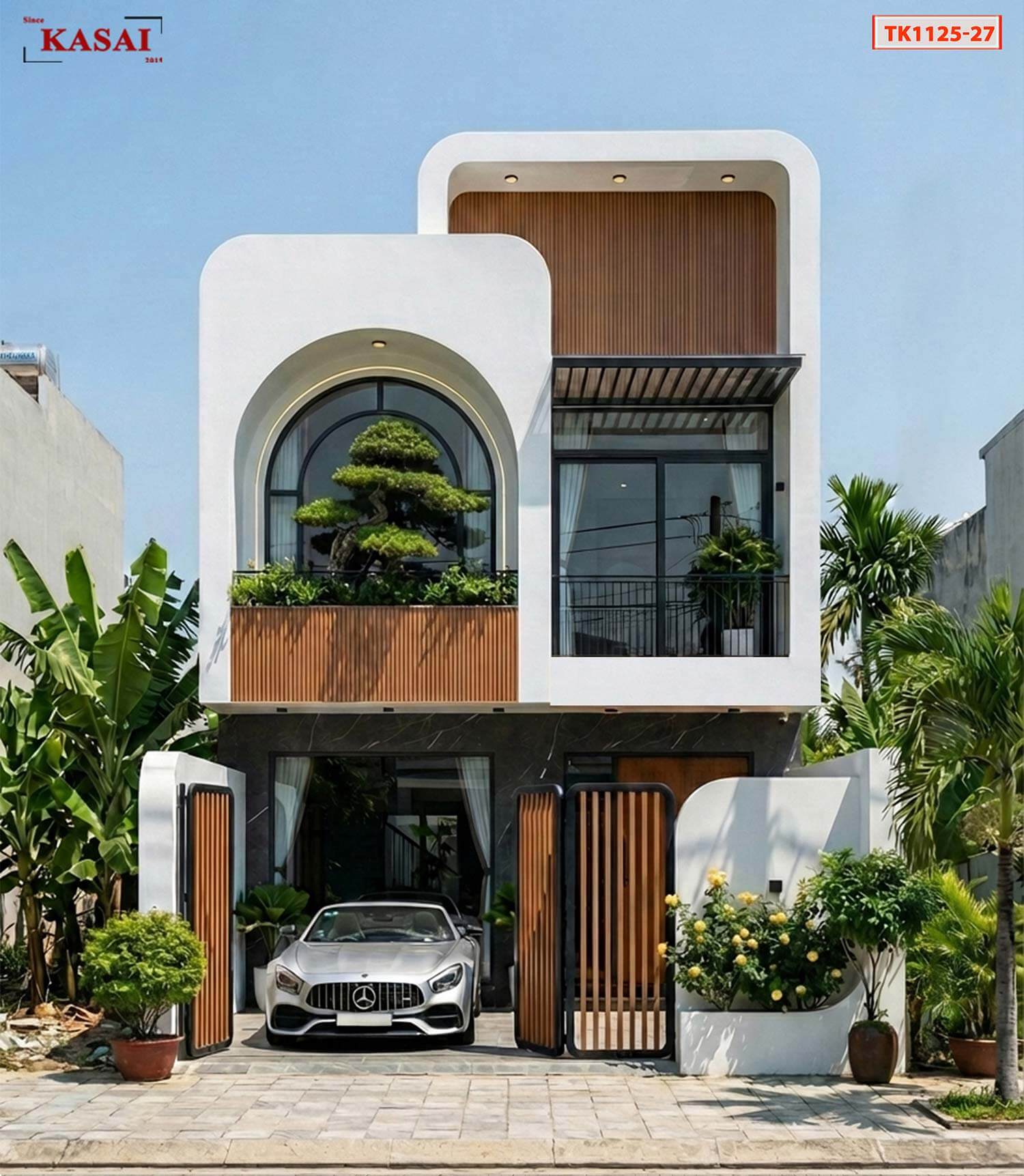 Nhà 2 tầng 6x13m mang phong cách hiện đại kết hợp soft moderm làm cho ngôi nhà trở nên vô cùng mềm mại. Sự kết hợp giữa đường cong, vật liệu tự nhiên và không gian xanh mát mang đến cho ngôi nhà sự sang trọng và gần gũi cực kỳ. Cùng khám phá ngay mẫu nhà đẹp này với KASAI bên dưới nhé!