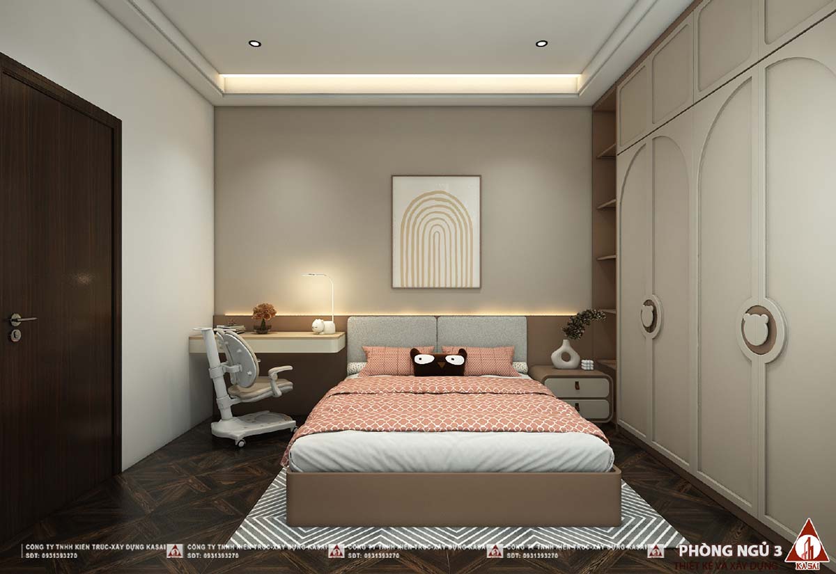 Phòng ngủ được bố trí không gian hợp lý với đầy đủ tiện nghi sinh hoạt
