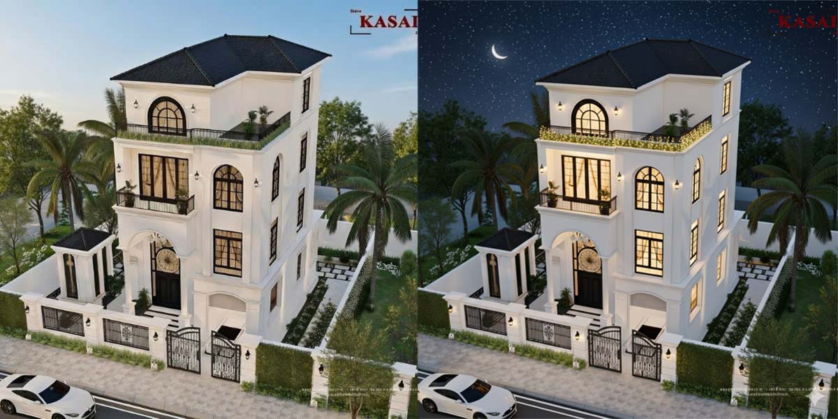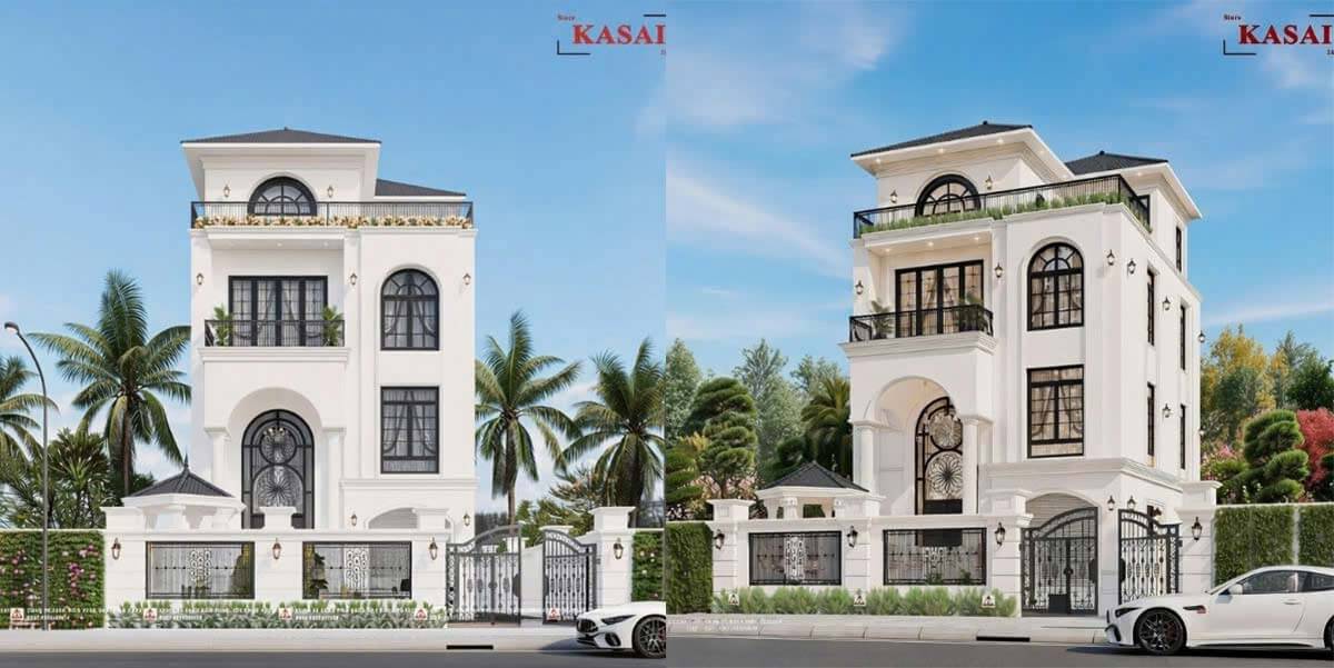 Nhà tân cổ điển mặt tiền 8m cực thu hút với mặt tiền thanh lịch và tỷ lệ hình khối hài hòa. Ngôi nhà nổi bật giữa phố với cửa vòm, tone màu trắng sang trọng cùng mái Nhật thông thoáng. Cùng khám phá ngay mẫu thiết kế biệt thự đẹp này của KASAI và liên hệ tư vấn nếu thích nhé!