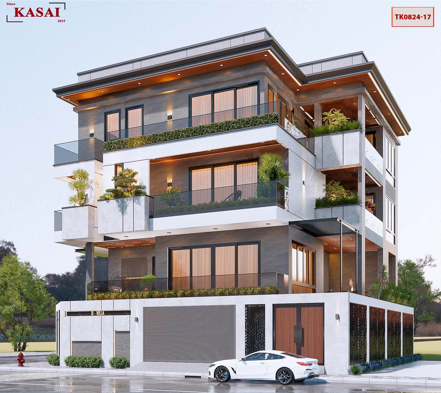 Biệt thự có tầng hầm giúp gia chủ có thể tận hưởng cuộc sống riêng tư trong không gian rộng rãi. Với phong cách hiện đại cao cấp cùng đường nét vuông vức, không rườm rà nhưng rất mạnh mẽ ngôi nhà trở nên cực sang trọng và nổi bật giữa phố. Cùng khám phá mẫu nhà này cùng thietkenhakasai.com để có được những ý tưởng mới cho căn nhà ấp của bạn nhé!