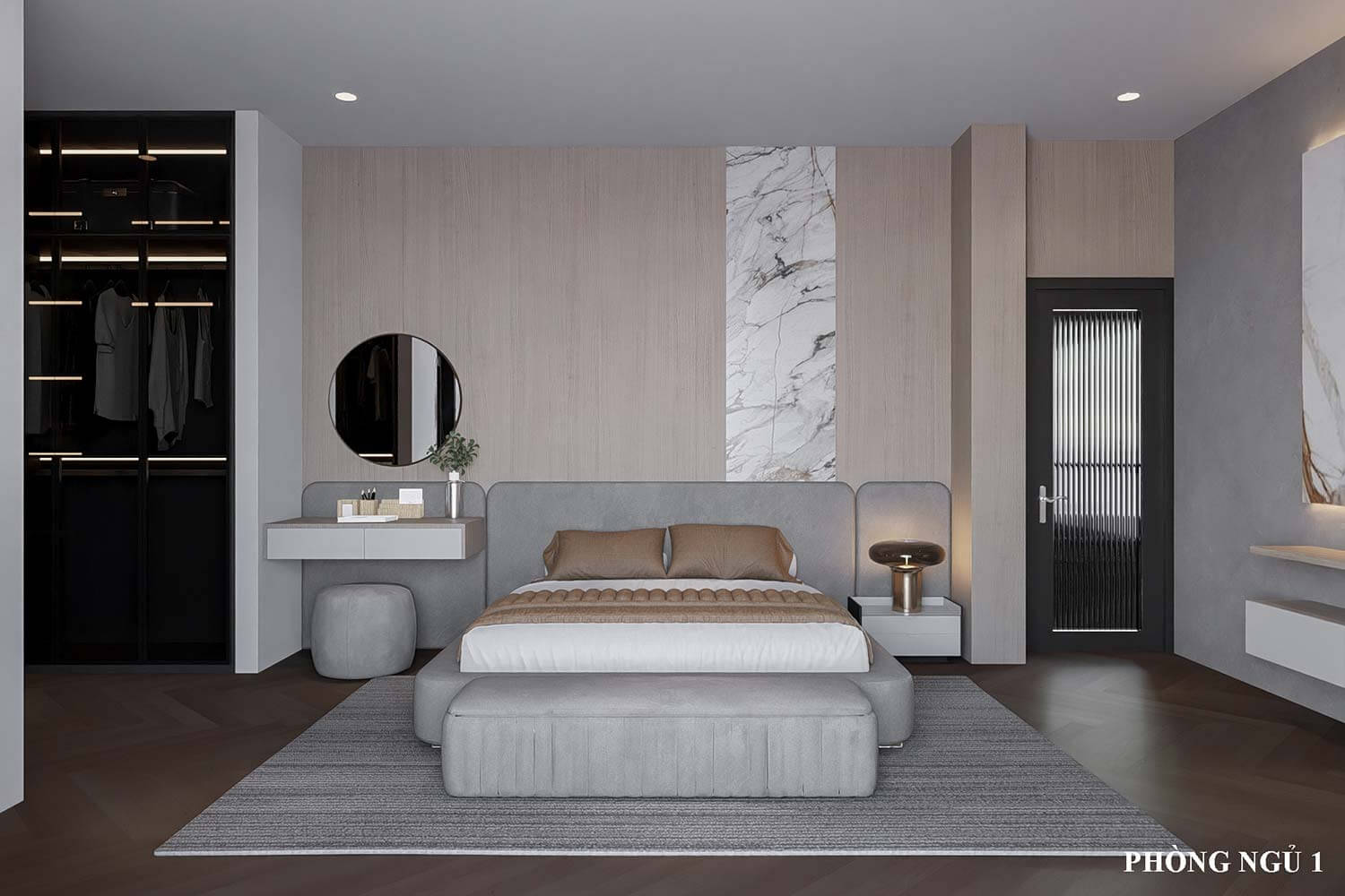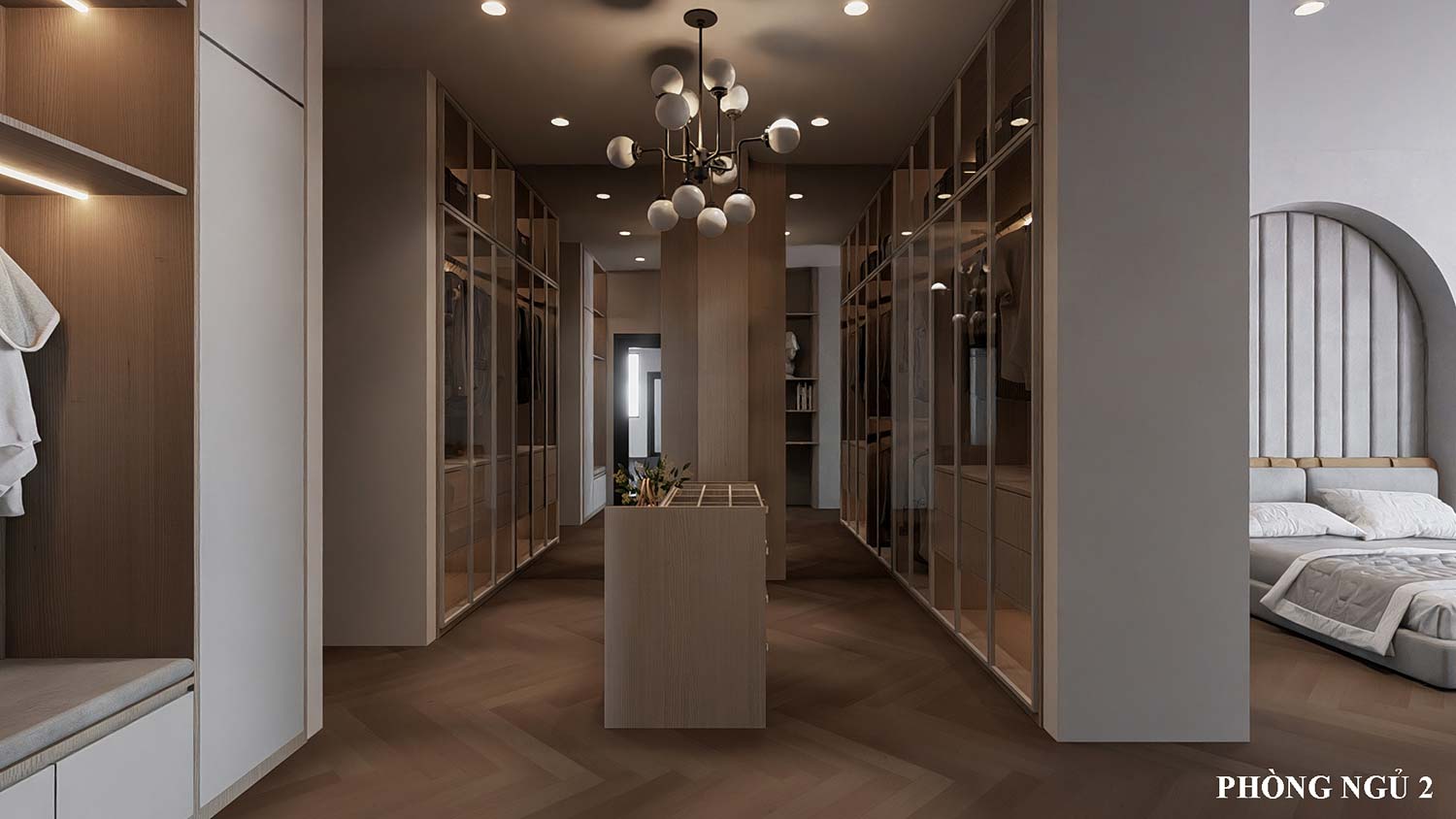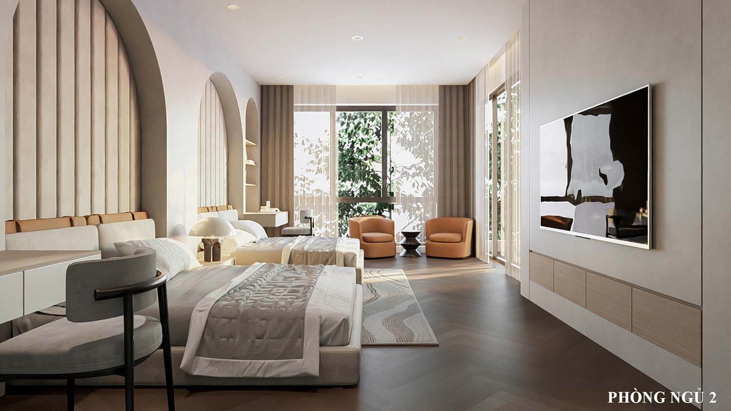 - Tầng 2: Khu vực uống trà, phòng ngủ 1, phòng ngủ 2